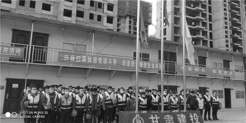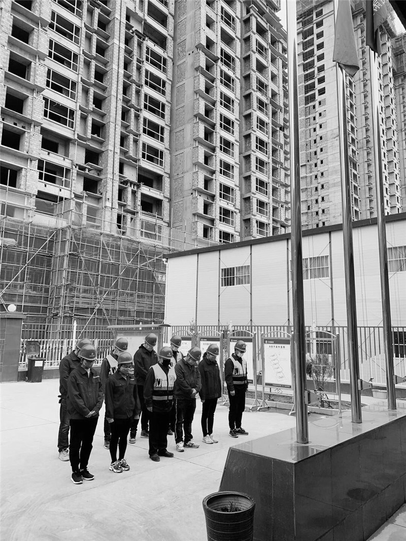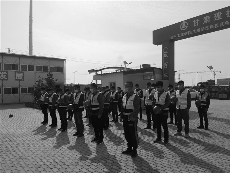 建設(shè)公司白塔寺人防疏散基地項(xiàng)目、西北師范大學(xué)附屬中學(xué)新建學(xué)生公寓樓項(xiàng)目、蘭州新區(qū)瑞嶺名郡項(xiàng)目、蘭州環(huán)球中心項(xiàng)目、天水工業(yè)博物館項(xiàng)目、定西市安定區(qū)南環(huán)路棚戶區(qū)改造項(xiàng)目、榆中阡陌院項(xiàng)目、渭源縣城北環(huán)路東段棚戶區(qū)改造工程項(xiàng)目等施工生產(chǎn)一線項(xiàng)目部在當(dāng)天自發(fā)降半旗默哀。上午10時(shí),現(xiàn)場(chǎng)作業(yè)車(chē)?guó)Q響,全體人員凝神肅立,表達(dá)對(duì)犧牲烈士和逝世同胞的崇高敬意和深切哀思。