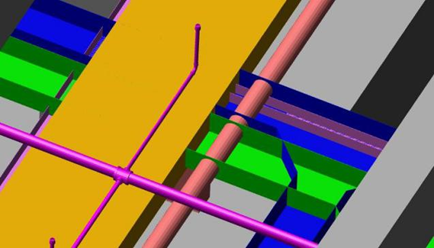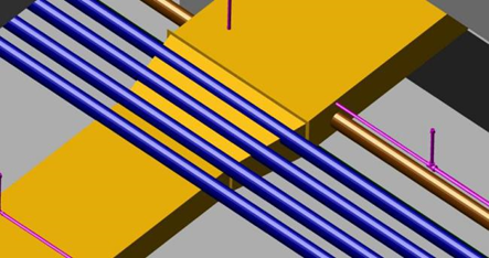 依據(jù)鋼筋施工方案,創(chuàng)建集水坑、剪力墻、梁、柱節(jié)點鋼筋排布BIM模型,對鋼筋排布進行三維模擬,節(jié)省材料,翻樣準確,施工方便。