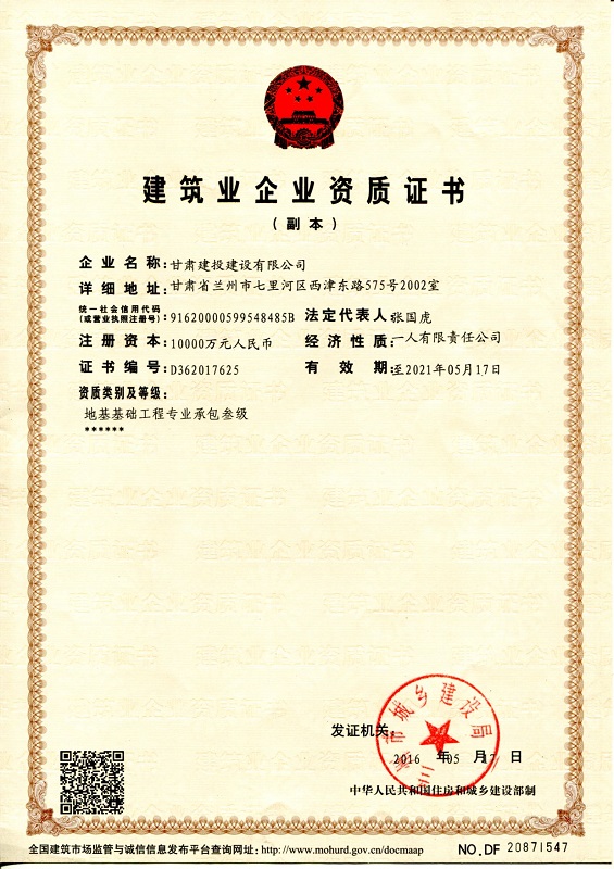 甘肅建投建設(shè)有限公司隸屬于甘肅建投集團(tuán),是代表集團(tuán)總公司統(tǒng)一管理和運(yùn)營(yíng)集團(tuán)總公司工程施工總承包特級(jí)資質(zhì)和具有獨(dú)立法人的建筑工程施工總承包壹級(jí)資質(zhì)企業(yè)。