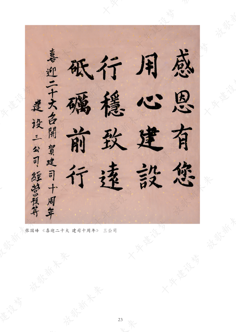 為更好的聚焦企業(yè)發(fā)展變遷,深挖企業(yè)精神內(nèi)涵,引導全司職工從企業(yè)十年發(fā)展的歷程軌跡中汲取力量,以強烈的責任感和飽滿的精神狀態(tài)投入到各項工作中。根據(jù)公司黨委關(guān)于《慶祝建司十周年主題宣傳及系列活動實施方案》的通知要求,建設(shè)公司工會組織開展了慶祝建司十周年“征文活動”、“第二屆職工藝術(shù)作品展”等活動。此次系列活動共收到140余名職工的168件作品,包括征文、書法、油畫、國畫、攝影、十字繡、剪紙、小制作等十多個種類。最終經(jīng)過各基層工會主席評選確定入冊作品155件,其中攝影作品38件、書法作品38件,美術(shù)作品26件,手工作品17件,征文作品36篇。這些作品創(chuàng)意新穎,主題突出,內(nèi)容豐富,充分體現(xiàn)了企業(yè)精神譜系和廣大職工的精神面貌,從不同角度展示了全司廣大職工的聰明智慧和藝術(shù)才華,反映了職工們心系企業(yè)、愛崗敬業(yè)、構(gòu)建和諧社會的熾熱情懷。
