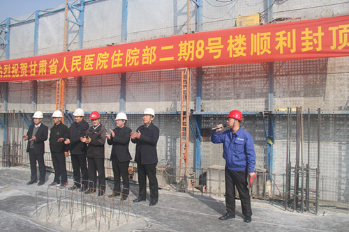 張國虎在現場代表施工單位向一直以來關注省人民醫(yī)院住院部二期工程建設的社會各界表示了衷心的感謝,他指出,8#樓主體結構的順利封頂,離不開建設、監(jiān)理、設計等各參建單位的通力配合,離不開日夜奮戰(zhàn)在施工現場的管理人員和廣大的建筑工人的辛勤努力;作為甘肅省的重點工程、民生工程,自該項目開工以來就得到了省上相關領導的高度關注和大力支持,建設公司更是組建了精干高效的項目施工班組、投入了大量人力、物力保證施工的順利進行,克服了施工場地小、技術難度高、施工工期緊等眾多困難,今天終于迎來了8#樓主體結構的封頂,標志著該項目施工階段性任務的圓滿完成;在后續(xù)的施工建設中,建設公司將一如既往的加強與各參建單位的溝通配合,堅持安全生產和質量管理嚴抓不懈,嚴格按照申報“魯班獎”的標準組織施工建設,在確保工程質量安全的前提下,按期完成各項施工任務,為關注省人民醫(yī)院住院部二期工程建設的社會各界交出一份滿意的施工答卷。