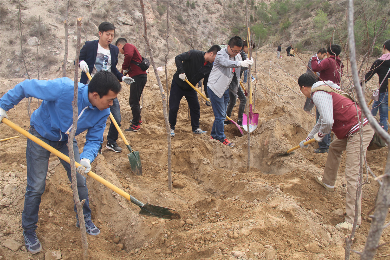 建設(shè)公司團委組織義務(wù)植樹和爬山活動