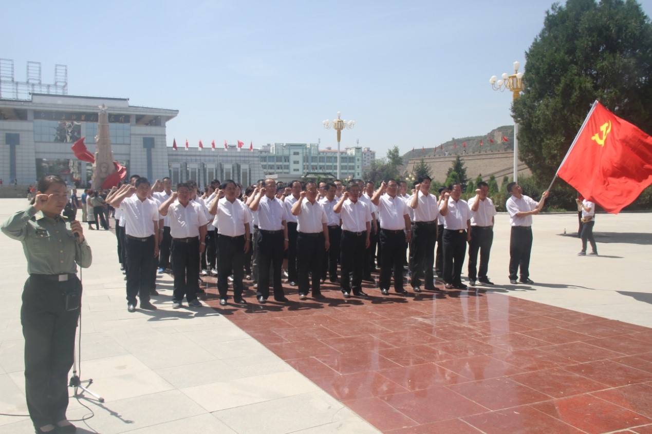 當(dāng)天上午,參會人員來到紅軍長征會師之地會寧縣,在會師樓前向革命英烈敬獻(xiàn)花籃并鞠躬致敬,隨后新入黨的共產(chǎn)黨員與老黨員一起在會師樓下,重溫了入黨誓詞,聆聽了關(guān)于中國工農(nóng)紅軍一、二、四方面軍在會寧會師的相關(guān)歷史情況和關(guān)于紅軍長征精神的主題講解、參觀了紅軍長征會師紀(jì)念館。
