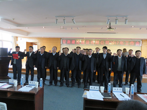在會上,建設公司19名處級干部進行了集體廉政宣誓隨后進行了勤政廉政民主測評,黨委書記張國虎代表公司領導班子作了《2017年工作會議報告》,同時,公司領導分別與基層各單位負責人簽訂了2017年度建設公司經(jīng)營、黨建、黨風廉潔建設等目標責任書。最后,會議表彰了2016年各類先進單位和個人。
