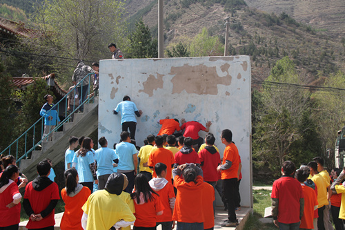 隨后,在教練老師的指導下,大家共同完成了神筆馬良、高空斷橋、趾壓板、呼吸的力量、畢業(yè)墻等拓展訓練項目。在“高空斷橋”項目中,大家在教練的指導下穿上保險衣扣上保險繩,從下往上爬到8米高的跳板上,跳過距離1.2米平臺板并再次返回。“斷橋一小步,人生一大步”,這個項目通過學員打破心理舒適區(qū)生理反應,在團隊的鼓勵下成功一躍,達到超越自我,挖掘潛力的目的。在“神筆馬良”項目中,大家用數(shù)十條繩子控制的毛筆在地上一張一平米大小的紙上書寫了“甘肅建投”四個大字,充分訓練了參訓人員的協(xié)調、溝通能力,有效的建立了團隊合作意識。在令人記憶猶新的“畢業(yè)墻”這個環(huán)節(jié),全體隊員在不借助任何外力和輔助工具的情況下徒手跨越過4米的高墻,搭人墻的同事用自己的身體為其他隊員的順利攀爬打下基礎,已經成功翻越的隊員奮力協(xié)助攀爬隊員,大家不分彼此、互相奉獻,互相依靠,深刻感受到了團隊力量的強大。每位參訓學員在每個項目都全情投入,互助互信,一起面對困難和挑戰(zhàn),分享成功和喜悅。