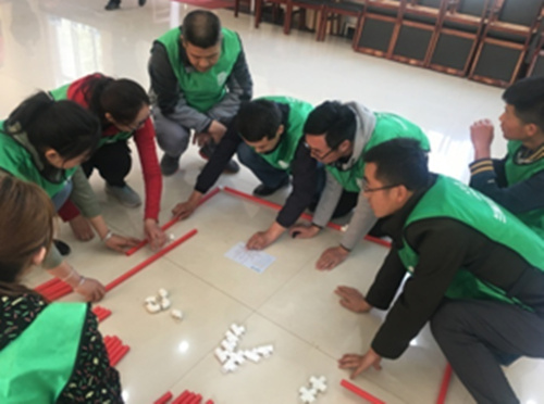 隨后,大家在興隆山拓展訓(xùn)練營開展了豐富多彩的素質(zhì)拓展訓(xùn)練活動。大家熱情高漲,全情投入的為自己的團(tuán)隊出謀劃策,起隊名、選隊長、定隊歌、設(shè)隊徽,通過“鼓動人心、目標(biāo)市場、漢諾塔、趾壓板”等拓展項目,使大家加深了同事之間的溝通聯(lián)系,增強了團(tuán)隊的凝聚力,提升了團(tuán)結(jié)協(xié)作意識。特別是在“呼吸的力量”環(huán)節(jié)中,大家相互溝通、團(tuán)結(jié)協(xié)作,通過看圖識圖,進(jìn)行前期策劃分工,明確責(zé)任,過程管理,充分發(fā)揮了建筑人的特長。