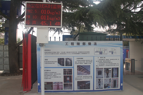 該工程施工過程中,項(xiàng)目部貫徹“以資源的高效利用為核心,以環(huán)保為優(yōu)先”的指導(dǎo)方針,為滿足綠色施工需要,項(xiàng)目部在施工現(xiàn)場安裝了視頻監(jiān)控系統(tǒng),揚(yáng)塵在線監(jiān)測系統(tǒng),基坑臨邊防護(hù)上設(shè)置噴霧降塵系統(tǒng),大門口設(shè)置洗車臺,對進(jìn)出車輛進(jìn)行沖洗,防止將泥帶出工地,現(xiàn)場非硬化地面實(shí)施抑塵劑噴涂固化和防塵網(wǎng)覆蓋,有效降低了土方施工對周邊環(huán)境的揚(yáng)塵污染。同時(shí)在基坑上部設(shè)置了地下水回收利用裝置,實(shí)時(shí)將地下降水抽出并經(jīng)沉淀處理的地下水,收集的雨水等水資源源源不斷地經(jīng)變頻設(shè)備打至用水點(diǎn),大大提高了水資源的二次利用效率。在保證質(zhì)量、安全的前提下,通過科學(xué)管理和技術(shù)進(jìn)步,最大限度的節(jié)約資源和減少對環(huán)境負(fù)面影響的施工活動,確保實(shí)現(xiàn)四節(jié)一環(huán)保的目標(biāo)。