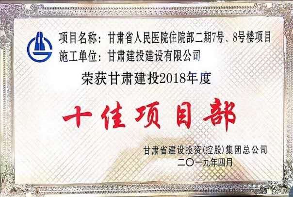 該項目自開工以來,安全文明施工管理取得了一定的成效,接受了省安質(zhì)局、蘭州市城市管理行政執(zhí)法局、蘭州市環(huán)保局、蘭州市綜治辦、蘭州市建設局等政府主管部門及甘肅建投的多次檢查,均得到了好評,曾一度被評為甘肅建投系統(tǒng)“安全文明施工”第一名,同時,項目的安全文明施工成果也得到了建設單位、監(jiān)理單位以及社會各界的認同和贊譽。在2017年,甘肅省人民醫(yī)院項目部被甘肅省建筑業(yè)聯(lián)合會評為甘肅省建設工程文明工地。2018年度甘肅省人民醫(yī)院住院部二期7號樓和8號樓項目被中國建筑業(yè)協(xié)會建筑安全分會評為2018年參加全國范圍組織學習交流的建設工程施工安全生產(chǎn)標準化工地。