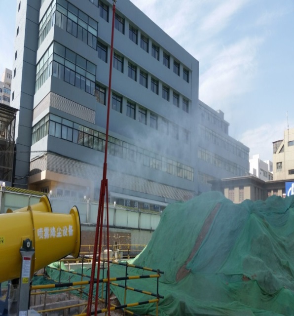 現(xiàn)場辦公室、現(xiàn)場圍墻、基坑四周、主體結構防護欄桿等設施實施占地面積小,組裝、拆除靈活、方便,回收利用率高,具有可觀的經(jīng)濟、環(huán)境和社會效益。項目部在土方開挖階段,嚴格按照市委市政府大氣治理相關文件要求,積極落實各項治污防塵措施,編制“施工現(xiàn)場揚塵治污方案”,依照方案實施并根據(jù)揚塵監(jiān)測數(shù)據(jù)不斷改進,有效降低了土方施工對醫(yī)院及周邊環(huán)境的揚塵污染,切實達到了市委市政府要求的“6個100%”,確保了本工地防塵治污達到要求,受到各方一致好評,被蘭州市“蘭州藍”宣傳片選做樣板工地。
